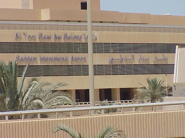 Saddam International Airport, now Iraq International Airport. ALL YOUR BASE ARE BELONG TO US! When it's not Mortar fire, it's these guys...